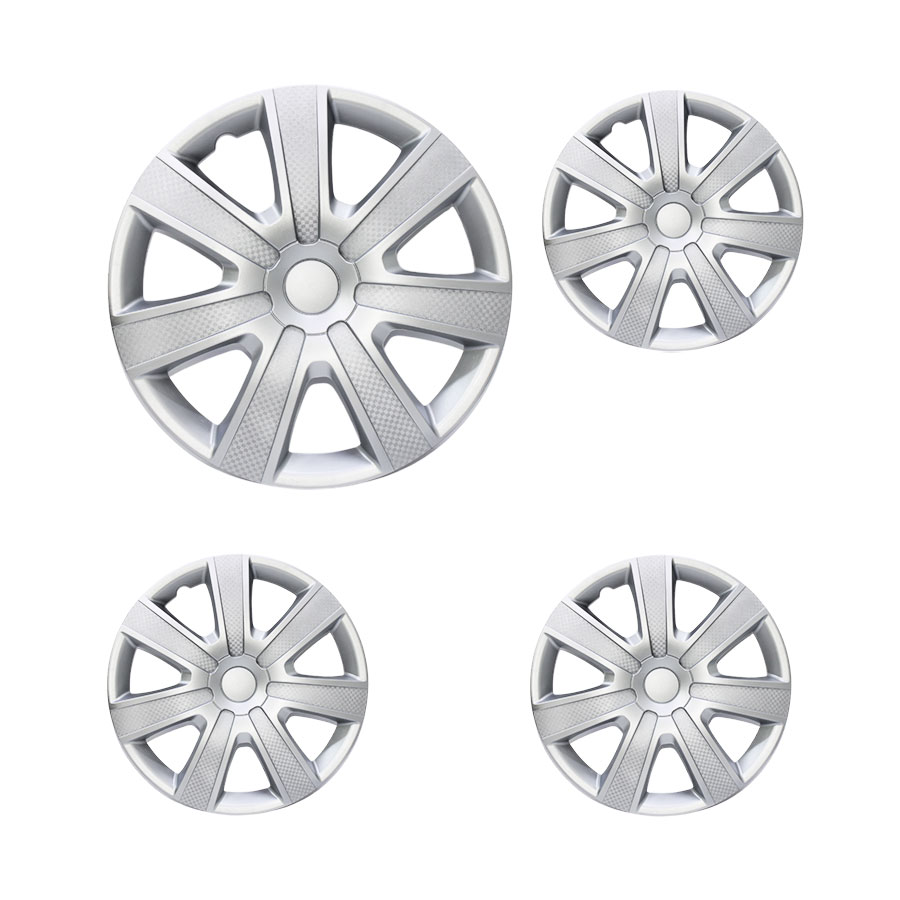 14″ Satin Silver & Silver Cabon Fibre Design Wheel Caps (Set of 4)