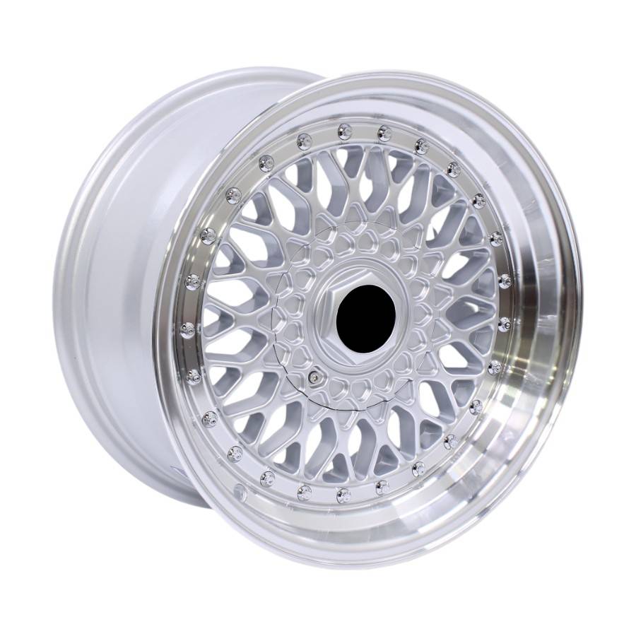 16″ E2502 4/100 & 4/108 Silver Machine Lip With Rivets Alloy Wheels