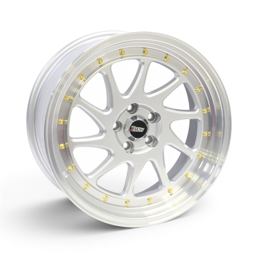17″ TWC495 5/100 Silver Machine Lip With Gold Rivets Alloy Wheels