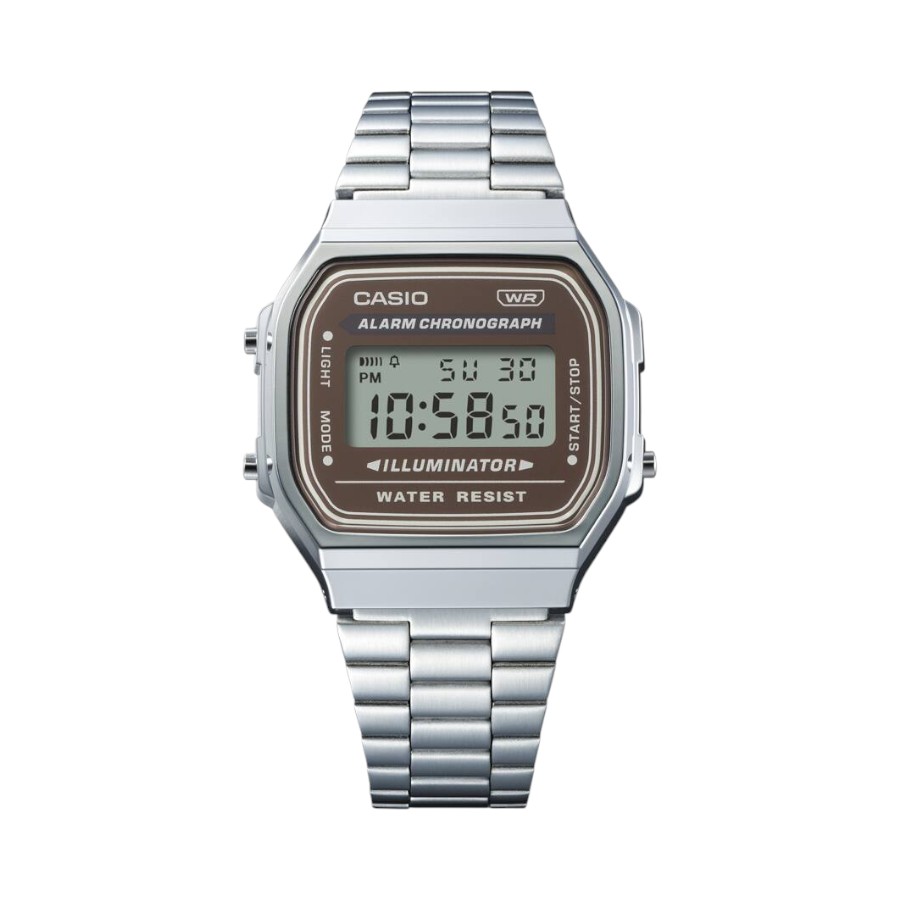 Casio Retro Silver & Tan Digital Wriswatch (A168WA-8AYDF)