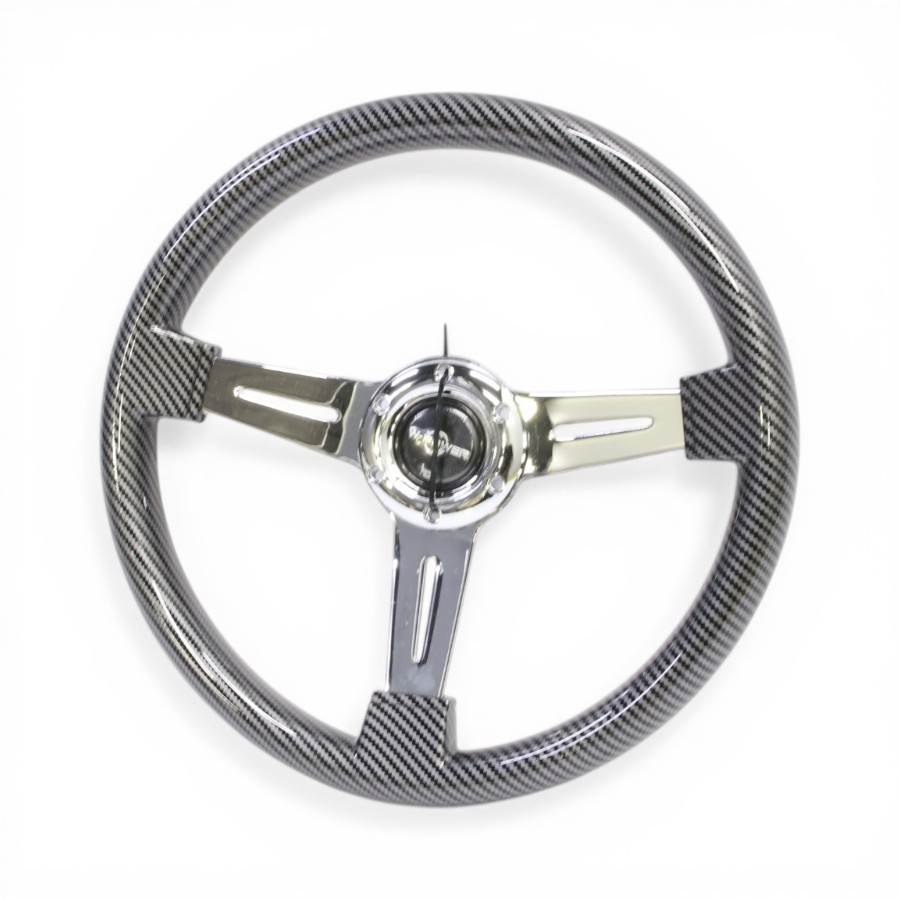GripForge Carbon Look Sport Steering with 3-Spoke Chrome Center – 350mm