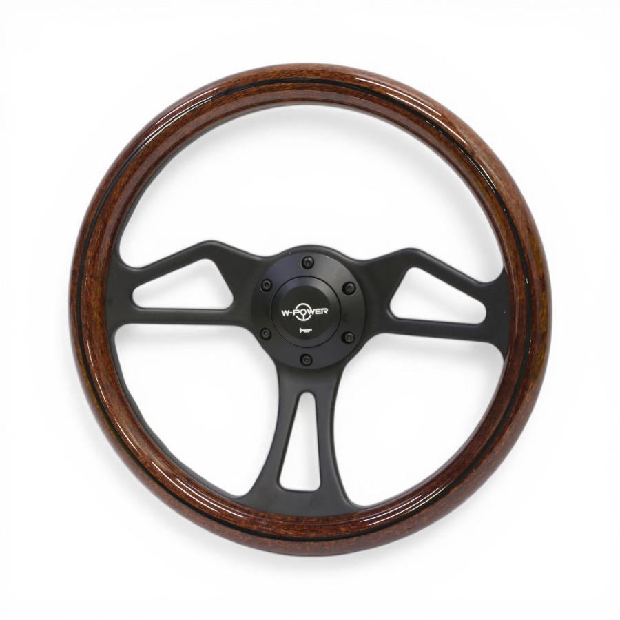 GripForge Dark Woodgrain Sport Steering Wheel with Black Stripe & Matt Black Spokes – 350mm