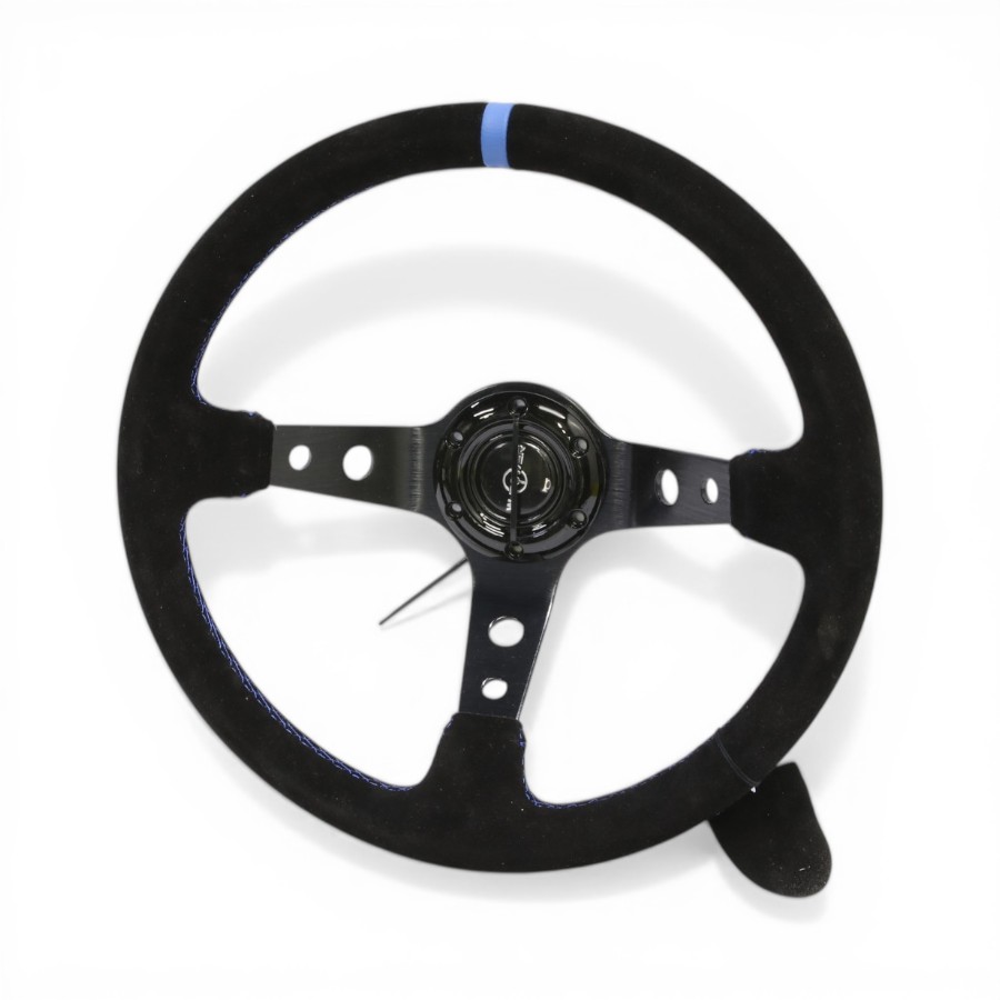 GripForge Drift Design Black Suede Sport Steering with Blue Stiching & Center Band – 350mm