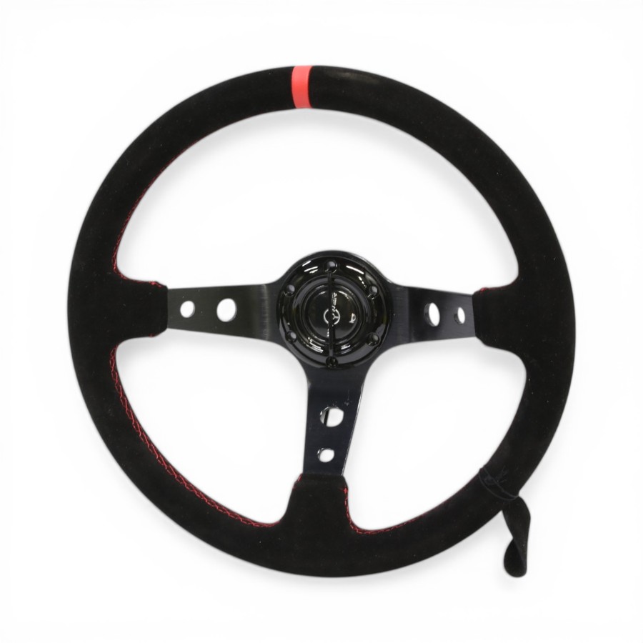 GripForge Drift Design Black Suede Sport Steering with Red Stiching & Center Band – 350mm