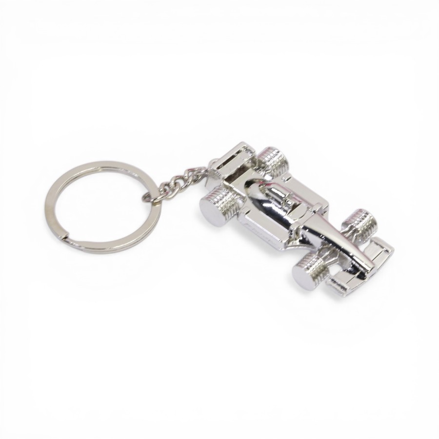 Keyring with Chrome Race Car Design