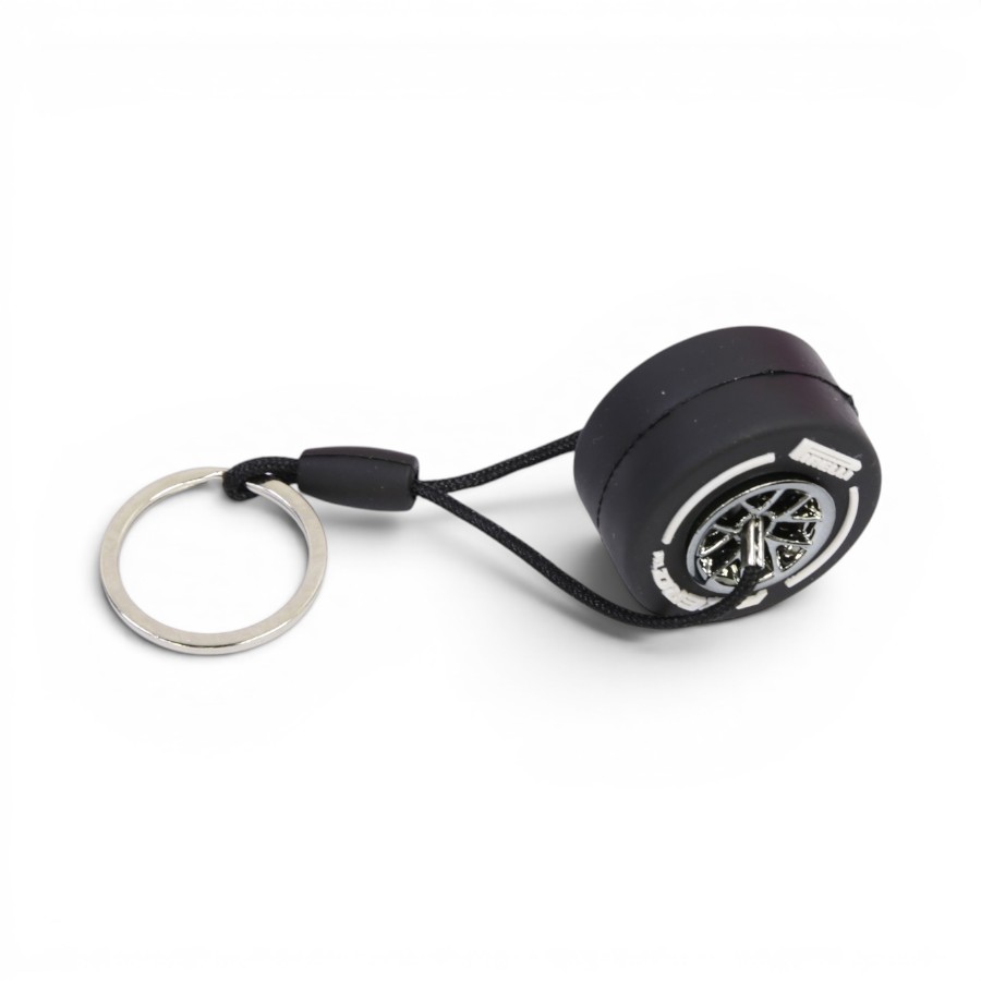 Keyring with Rubber Alloy Wheel & Pirelli Tyre (White)