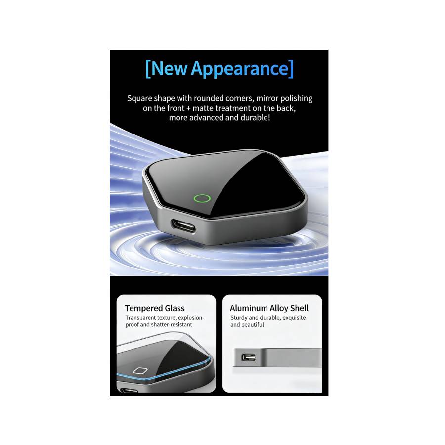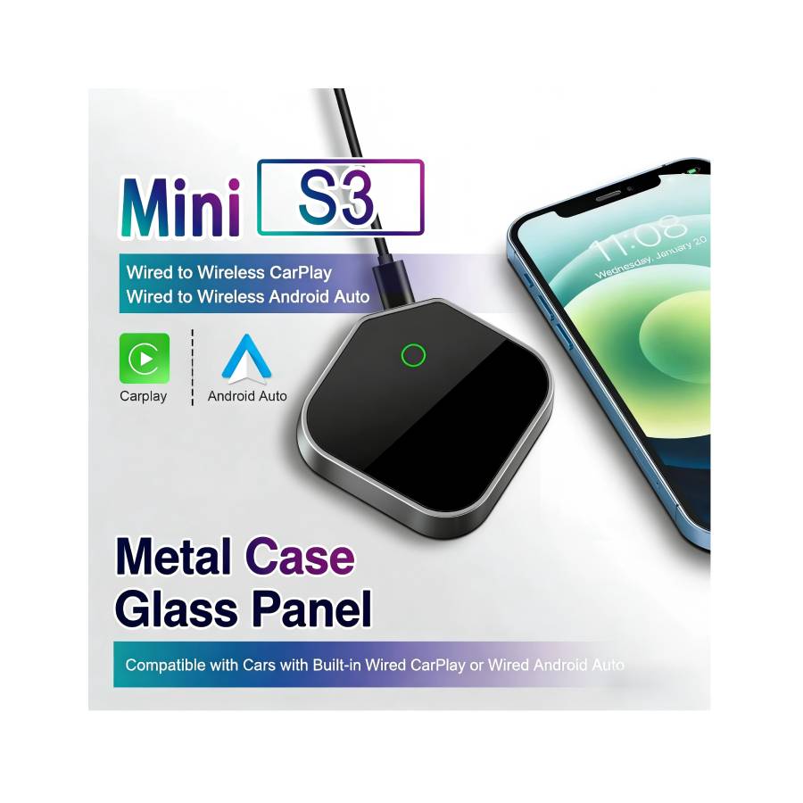 Mini S3 Wireless Apple CarPlay & Android Auto Adapter – Metal Case Glass Panel USB-C Plug And Play Converter