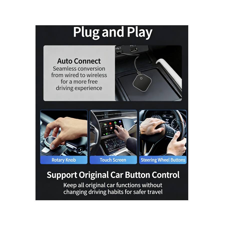 Converts wired Apple CarPlay to wireless Apple CarPlay