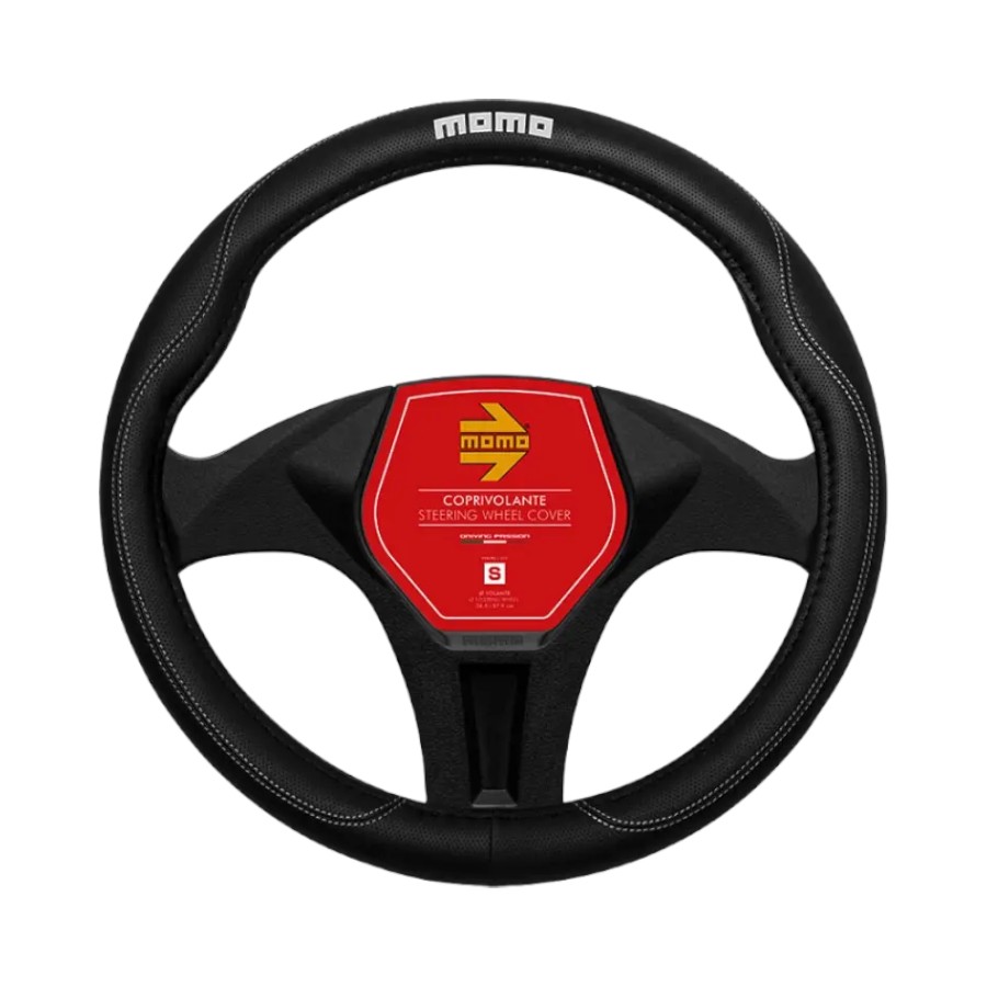 Momo Comfort Black with White Stitch Steering Wheel Cover