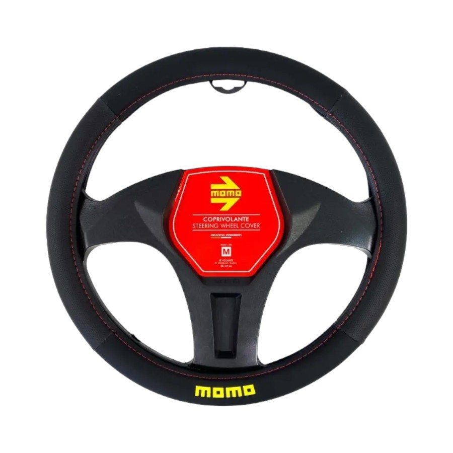 Momo Easy Black with Red Stitch PU Steering Wheel Cover