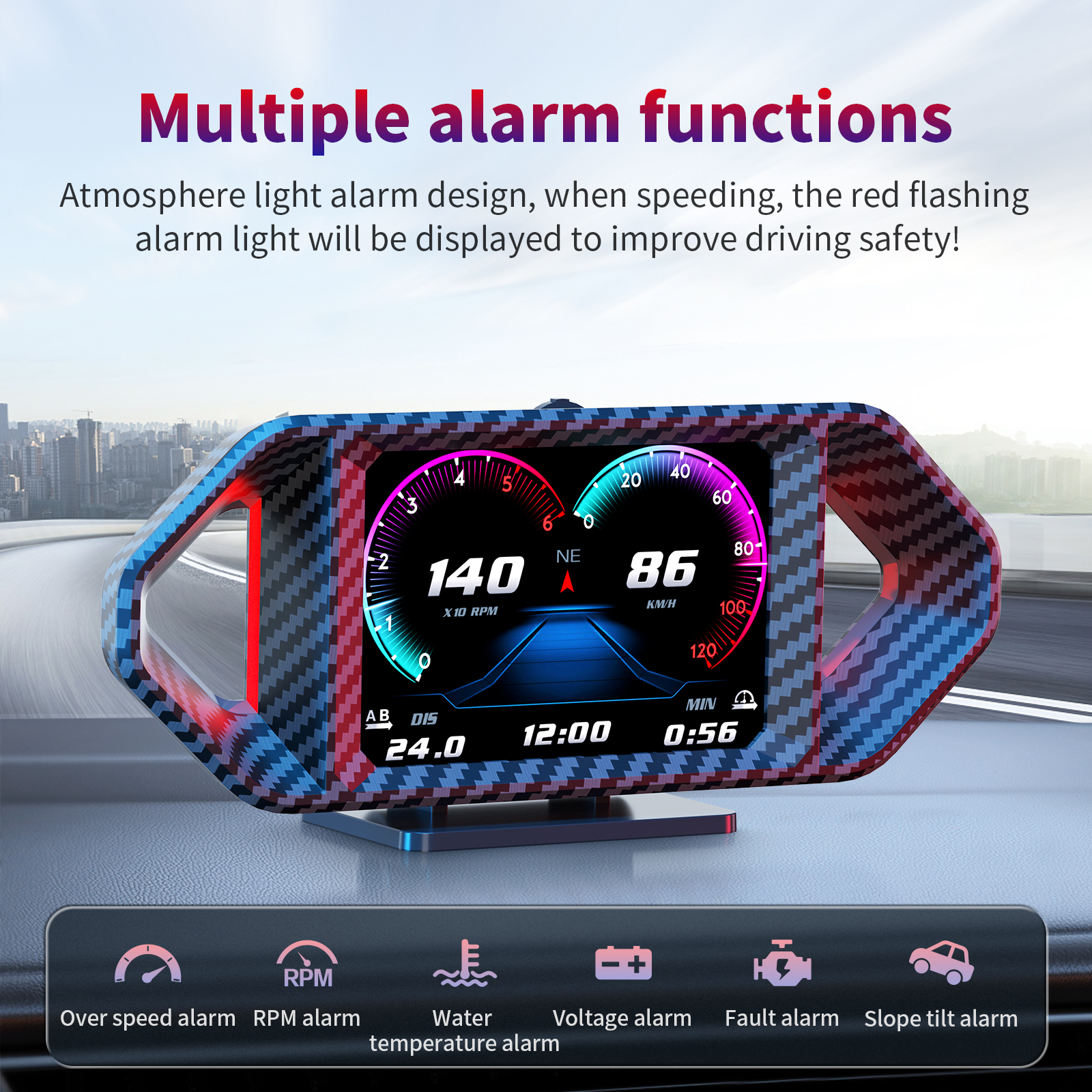P26 OBD2 Head-Up Display With Carbon Fiber Design – Driving Score, Alarms & Full Vehicle Data
