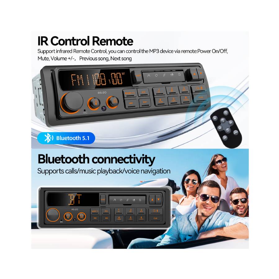 Retro European Style Single-DIN Car Radio Stereo with Bluetooth, USB/SD/AUX & FM/AM for Classic Vehicles