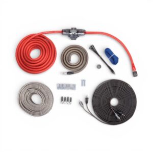 Kit includes 17 feet of 8 AWG power wire, 3 foot of 8 AWG ground wire, 30 feet of 16 AWG speaker wire, (1) 16 feet twisted pair RCA, AGU fuse holder and fuse, 20 feet of remote wire, 40 Amp fuse.
