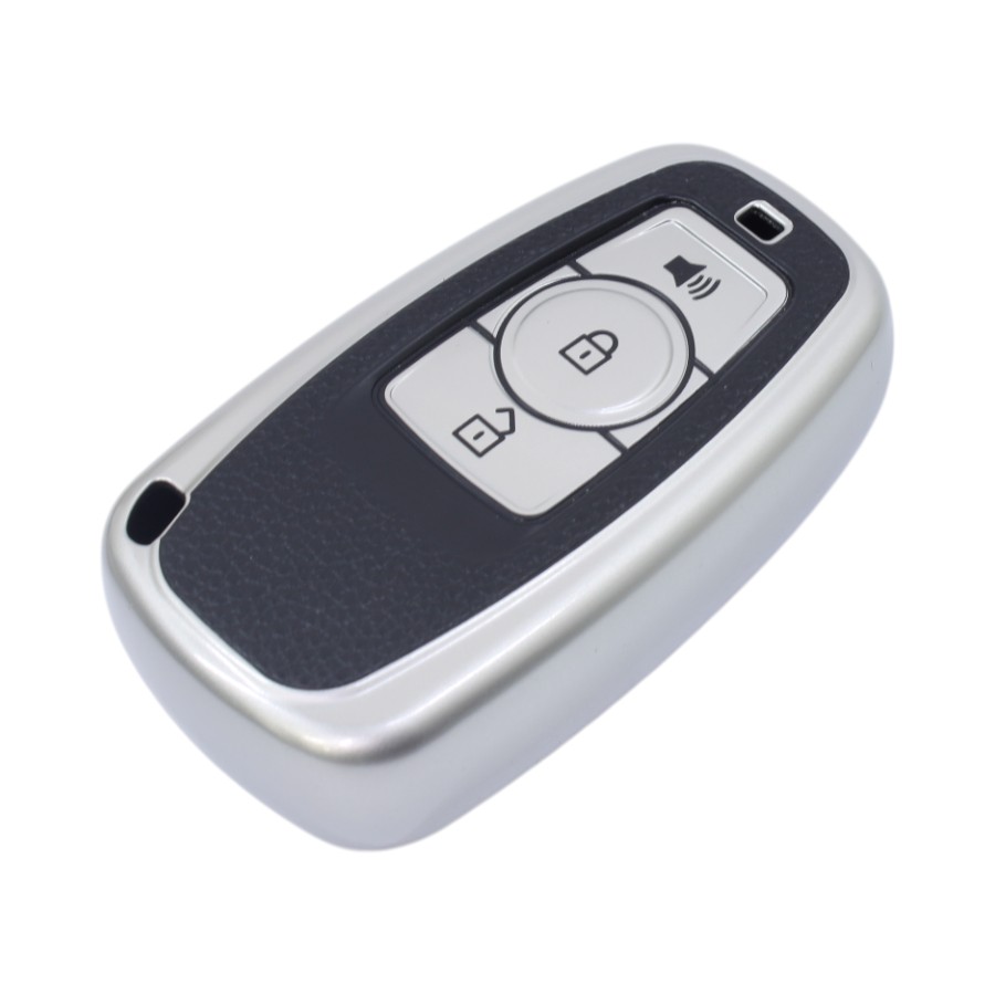 TPU & Leather Finish Key Cover For GWM Haval – Design 1 – Silver (XEA-KCGWM1S)