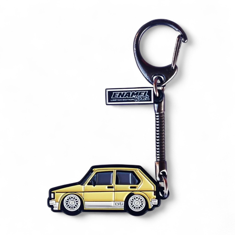 VW Mk1 Citi Yellow – Die-Cast Enamel Keychain